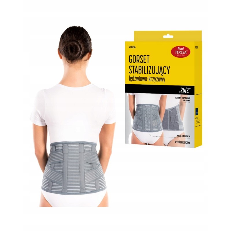 Dzięki anatomicznemu dopasowaniu oraz regulowanym zapięciom, produkt idealnie przylega do ciała, zapewniając komfort i swobodę ruchów. Gorset lędźwiowo-krzyżowy Pani Teresa Medica „26/2” jest polecany przy schorzeniach takich jak dyskopatia, rwa kulszowa, oraz w rehabilitacji pooperacyjnej i pourazowej.