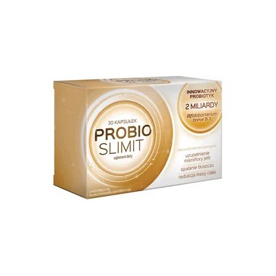 Probioslimit to suplement diety w kapsułkach przeznaczony dla osób dorosłych, które chcą uzupełnić codzienną dietę w składniki aktywne preparatu. W jednej kapsułce znajdują się 2 mld bakterii probiotycznych Bifidobacterium Breve B-3.